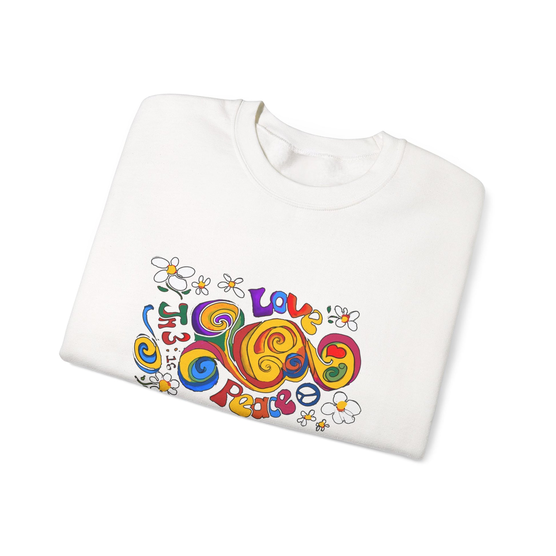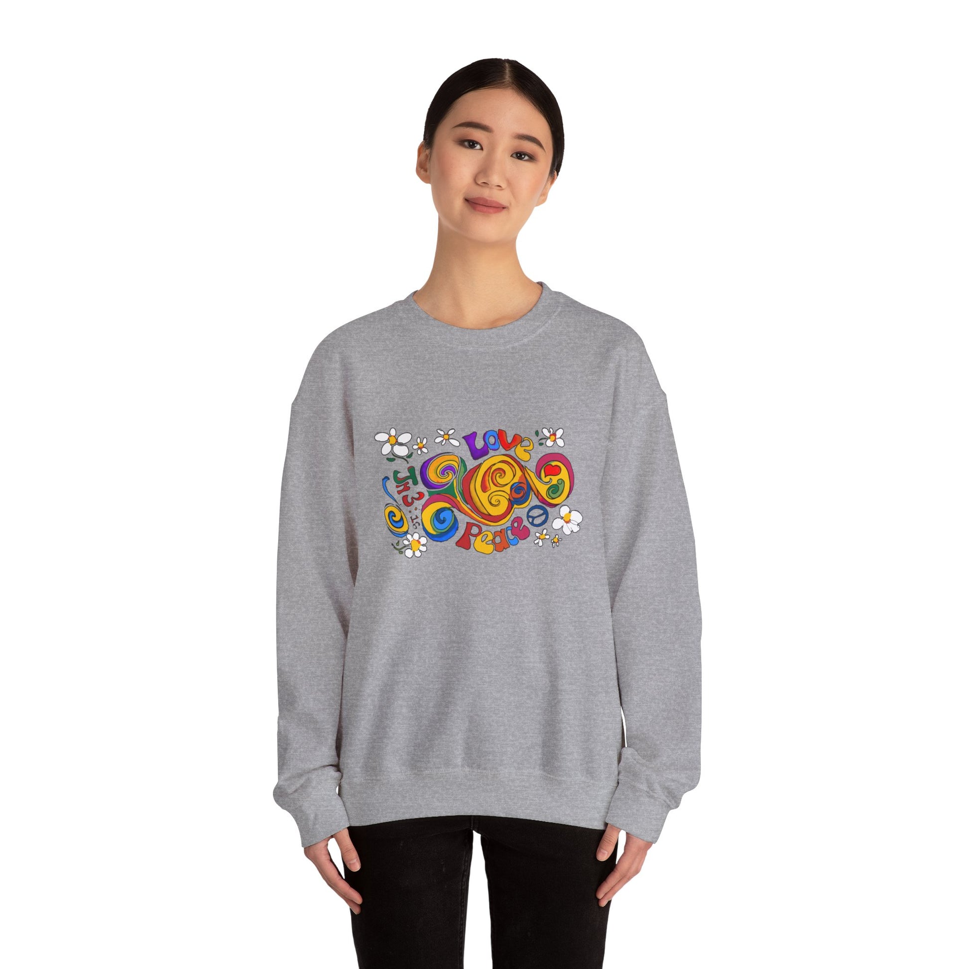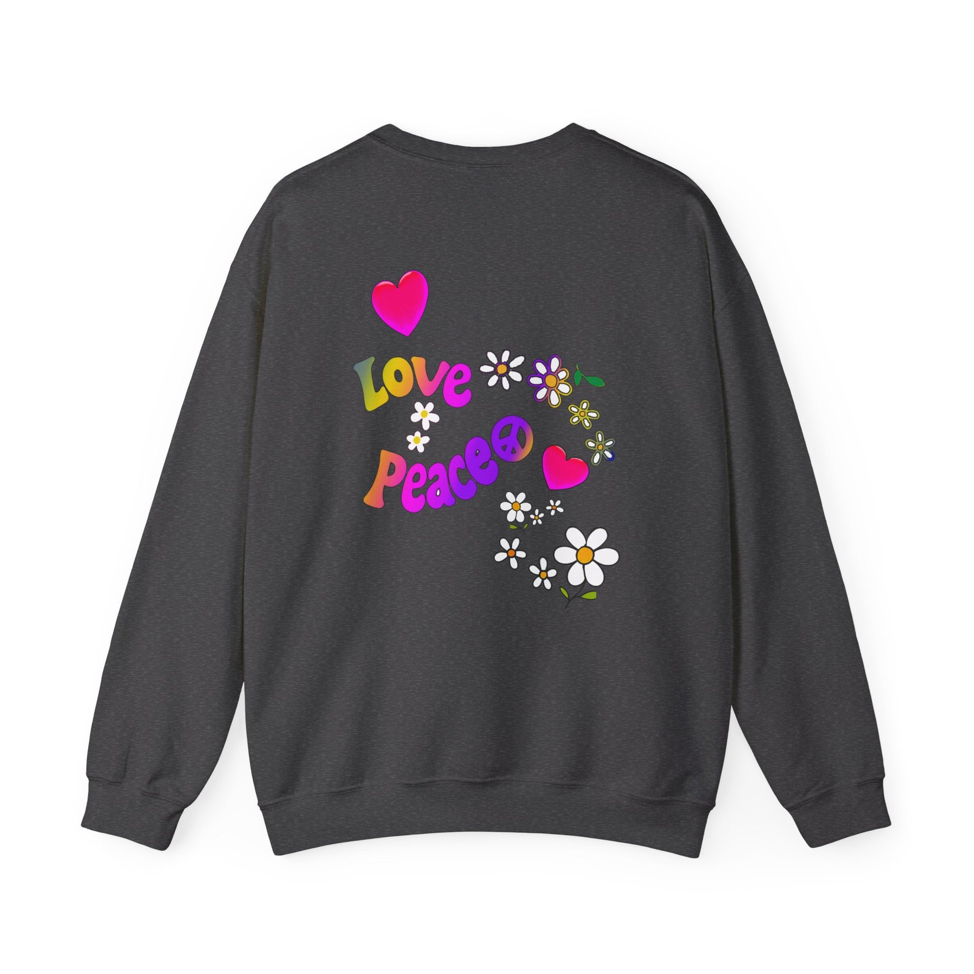 Stay cozy and stylish with this unisex heavy blend crewneck sweatshirt, designed for those who appreciate comfort and creativity. The vibrant, playful artwork featuring messages of love and peace brings a cheerful vibe to your wardrobe, making it perfect for casual outings, gatherings with friends, or even cozy nights in. Ideal for anyone who loves unique fashion with a message, this sweatshirt is a great gift for birthdays, holidays, or just because! Celebrate occasions like Valentine's Day, Earth Day, or any day that calls for expressing positivity and joy. Embrace a warm, welcoming atmosphere in this essential piece!
