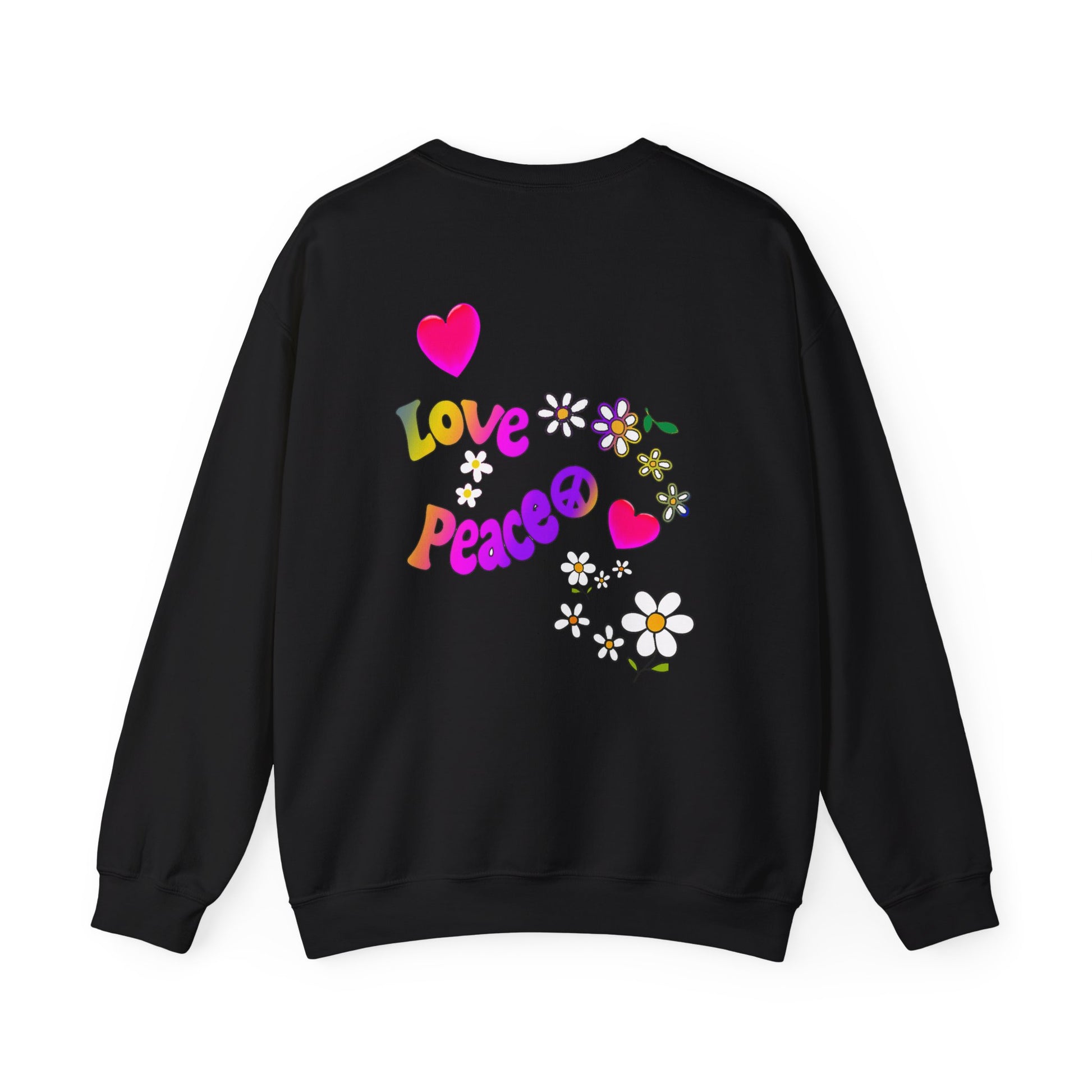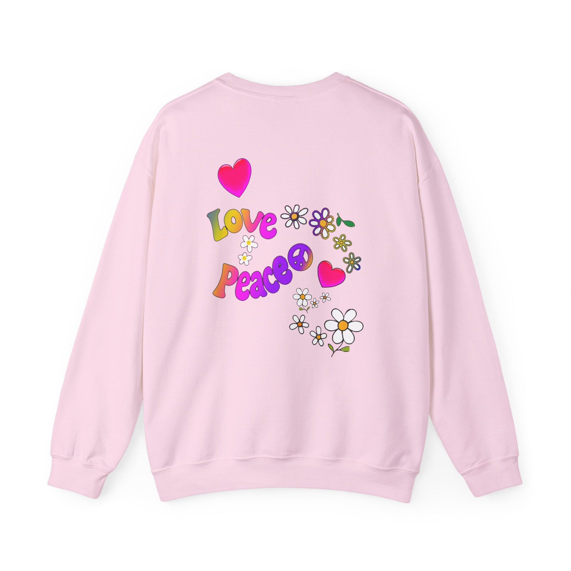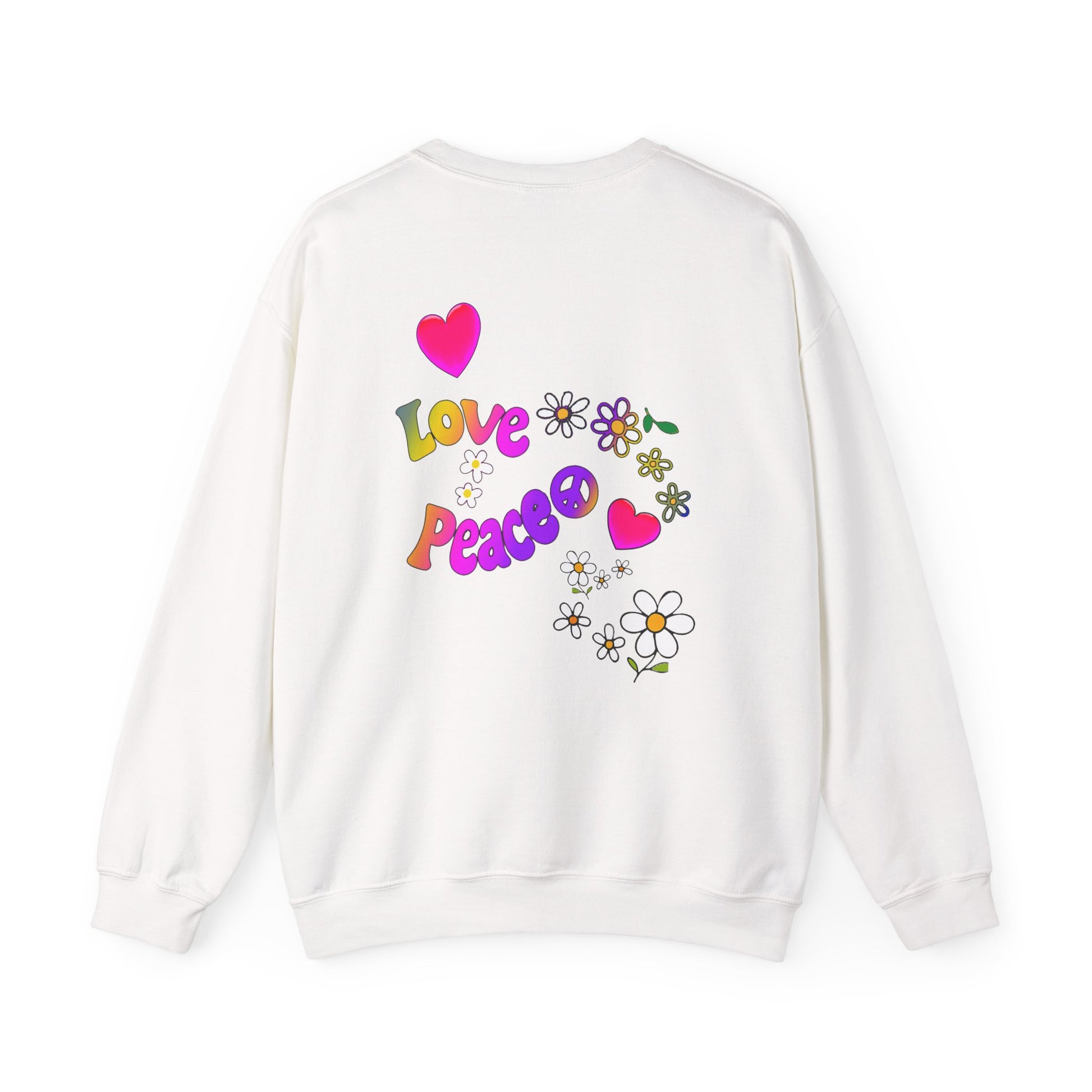 Colorful Peace & Love Sweatshirt, Retro Crewneck for Cozy Days, Ideal Gift for Friends, Festival Wear, Hippie Style Clothing