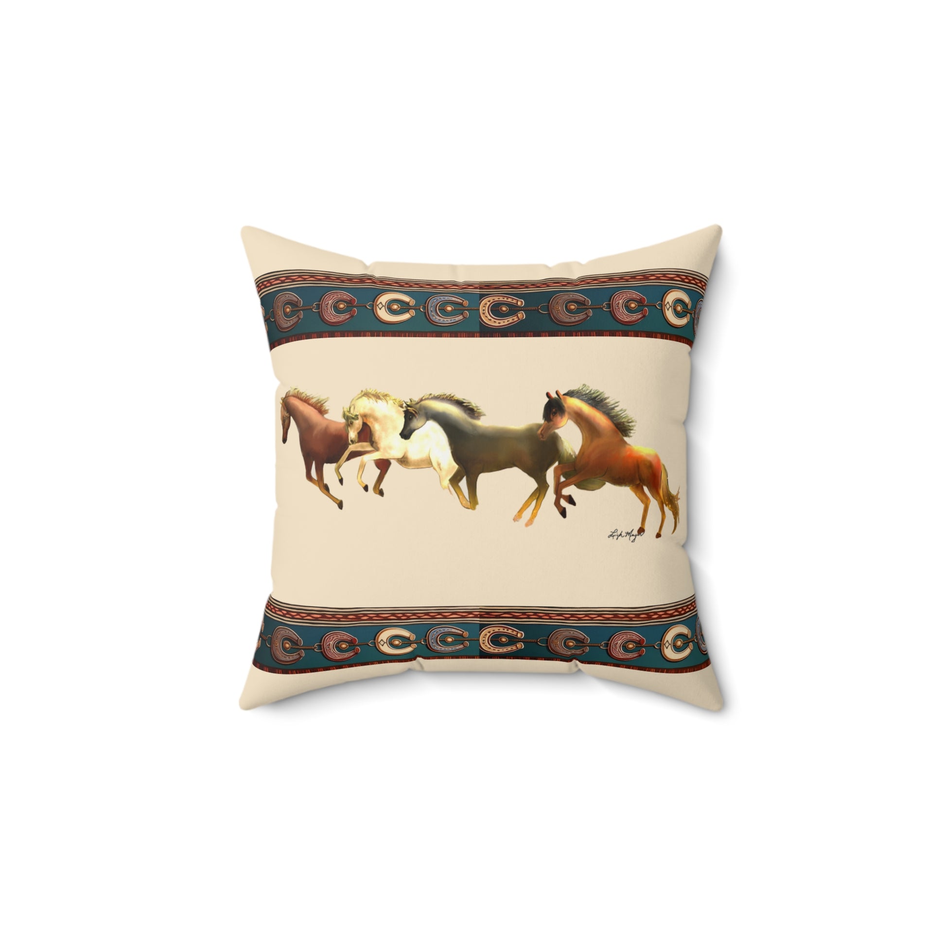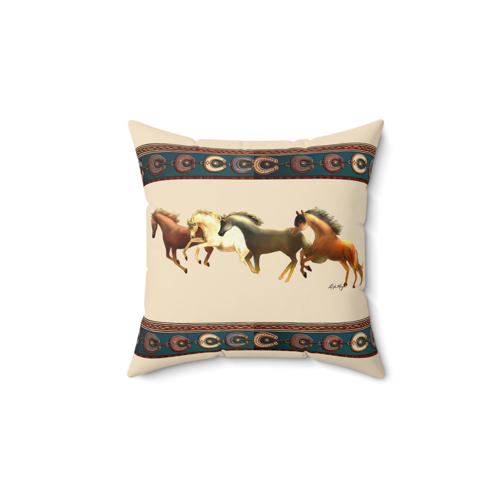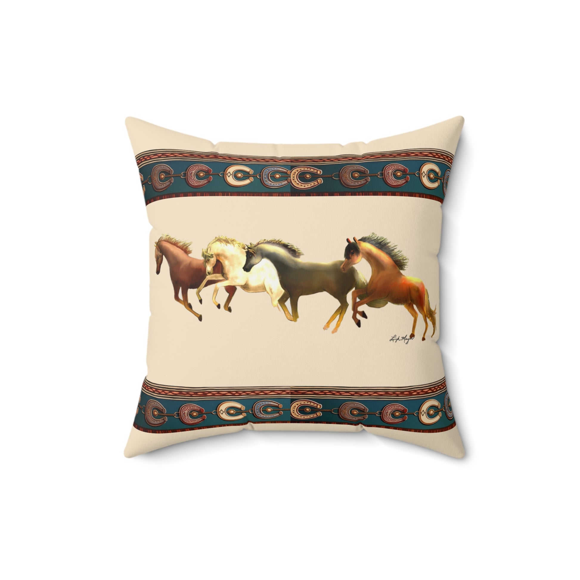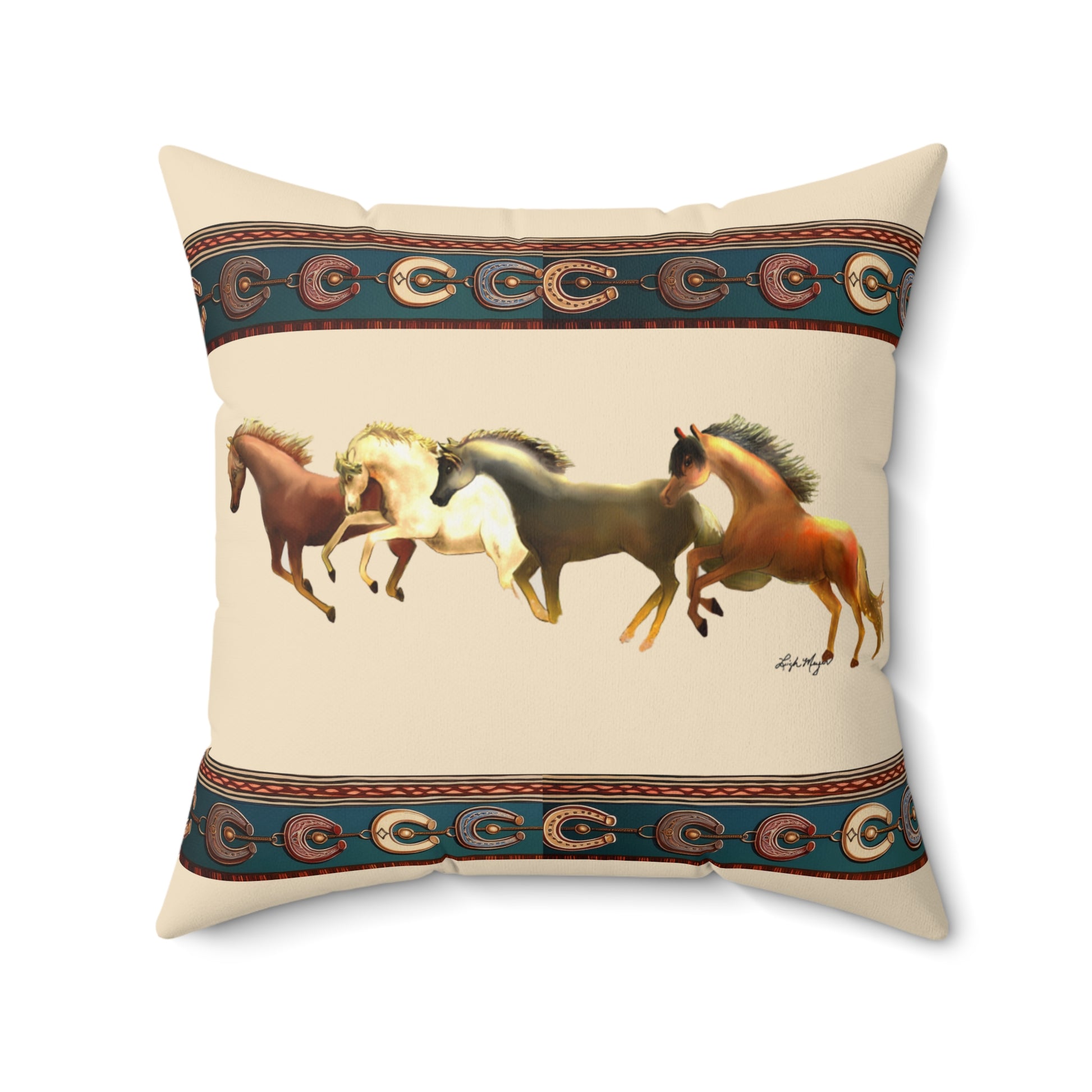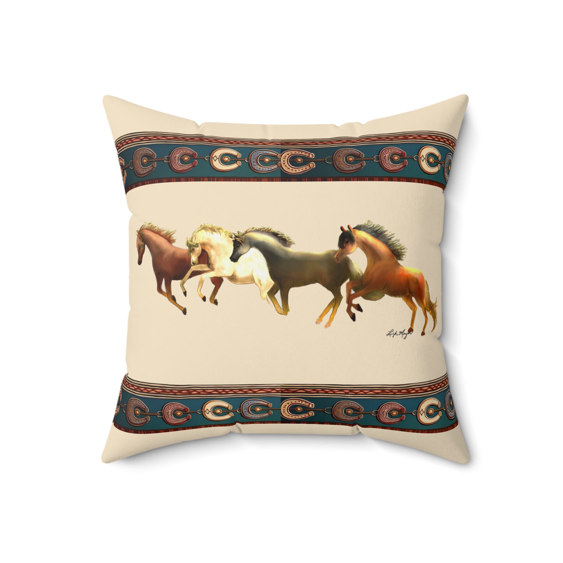 Dawn Treaders Faux Suede Pillow – Galloping Horses Design