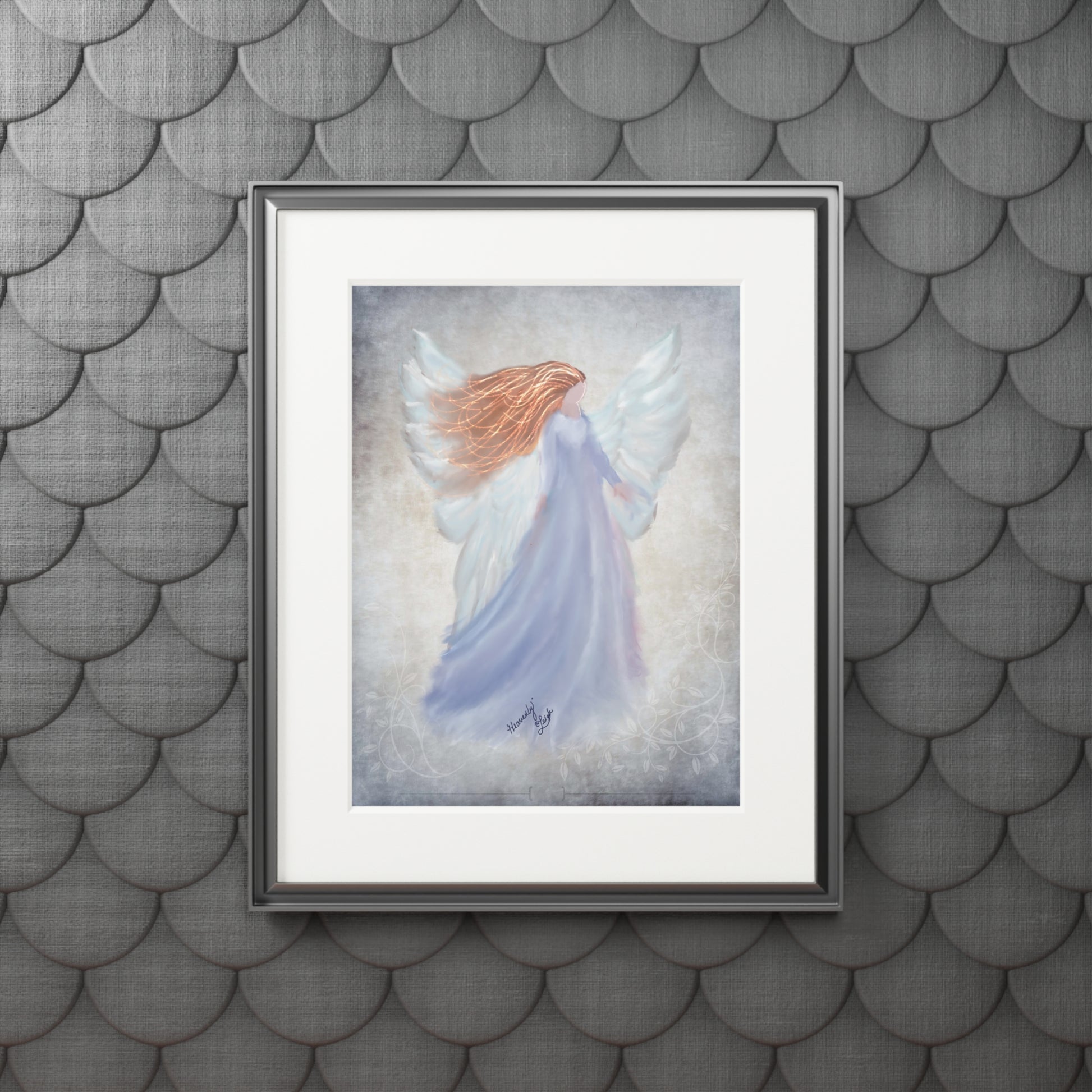 Heavenly Angel Fine Art Print, Framed Wall Decor, Spiritual Gift, Ethereal Art, Angelic Decor, Home Framing Idea, Christmas Gift