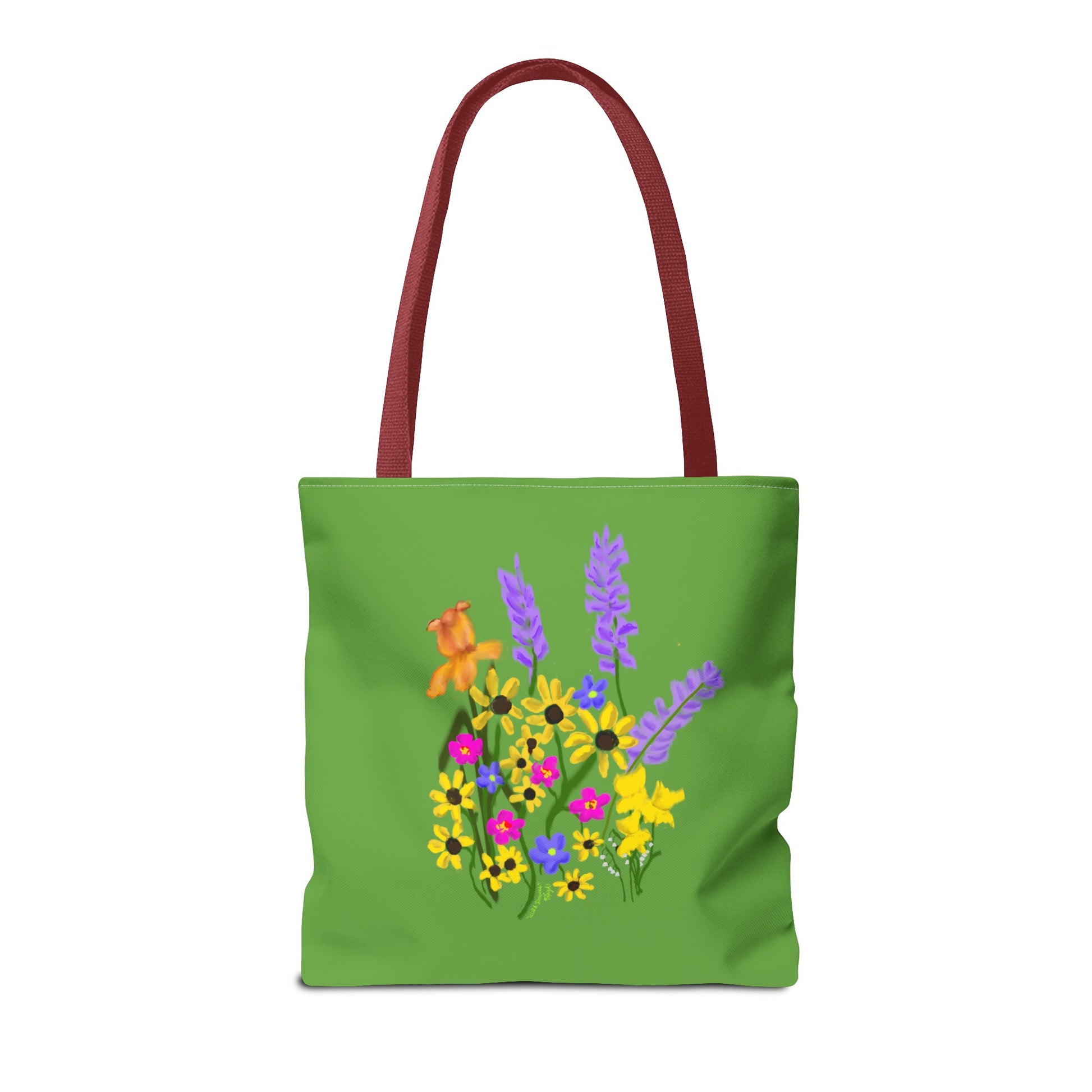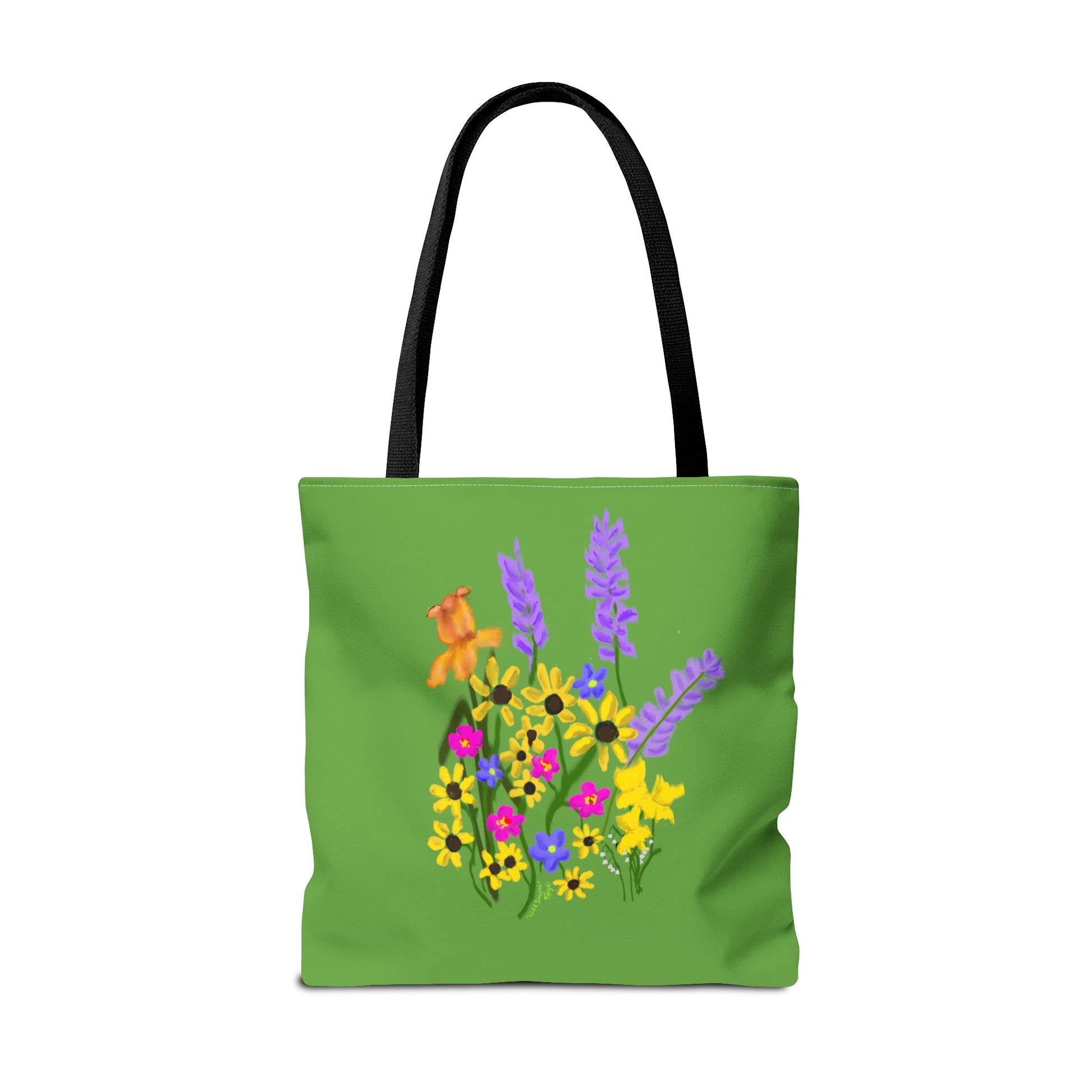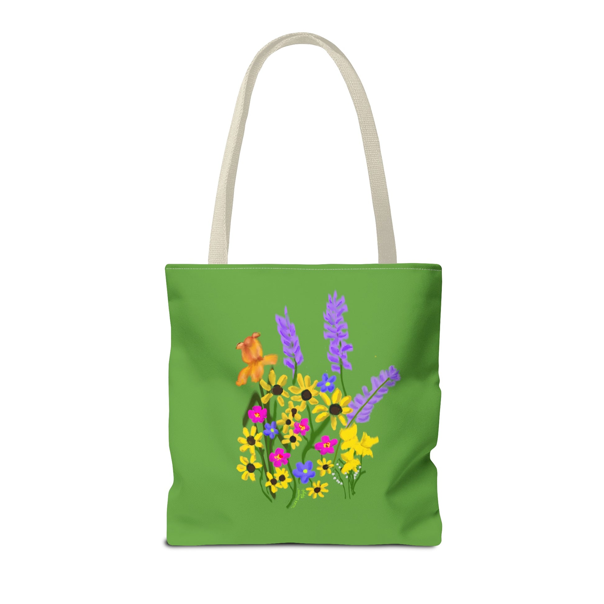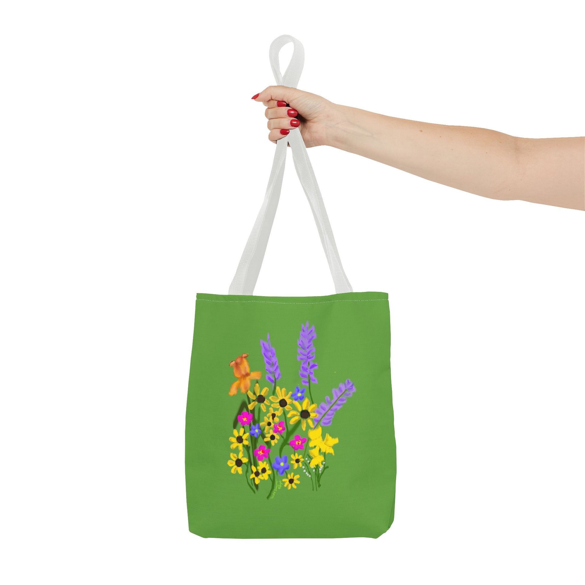 Scribbles Wildflowers - Green - Tote Bag (AOP)