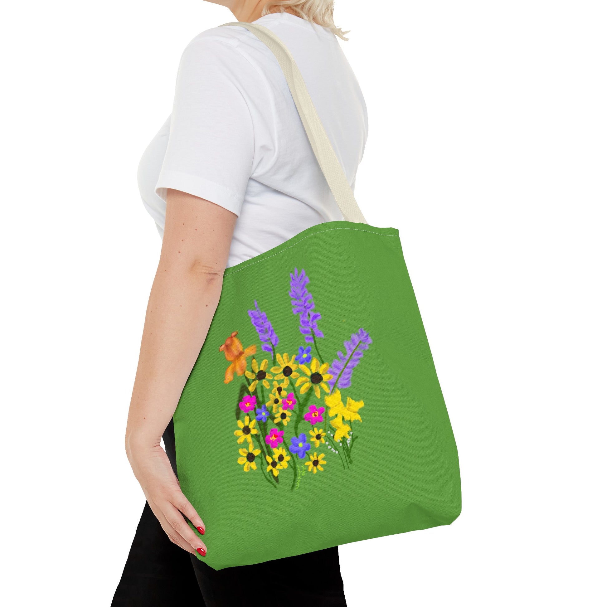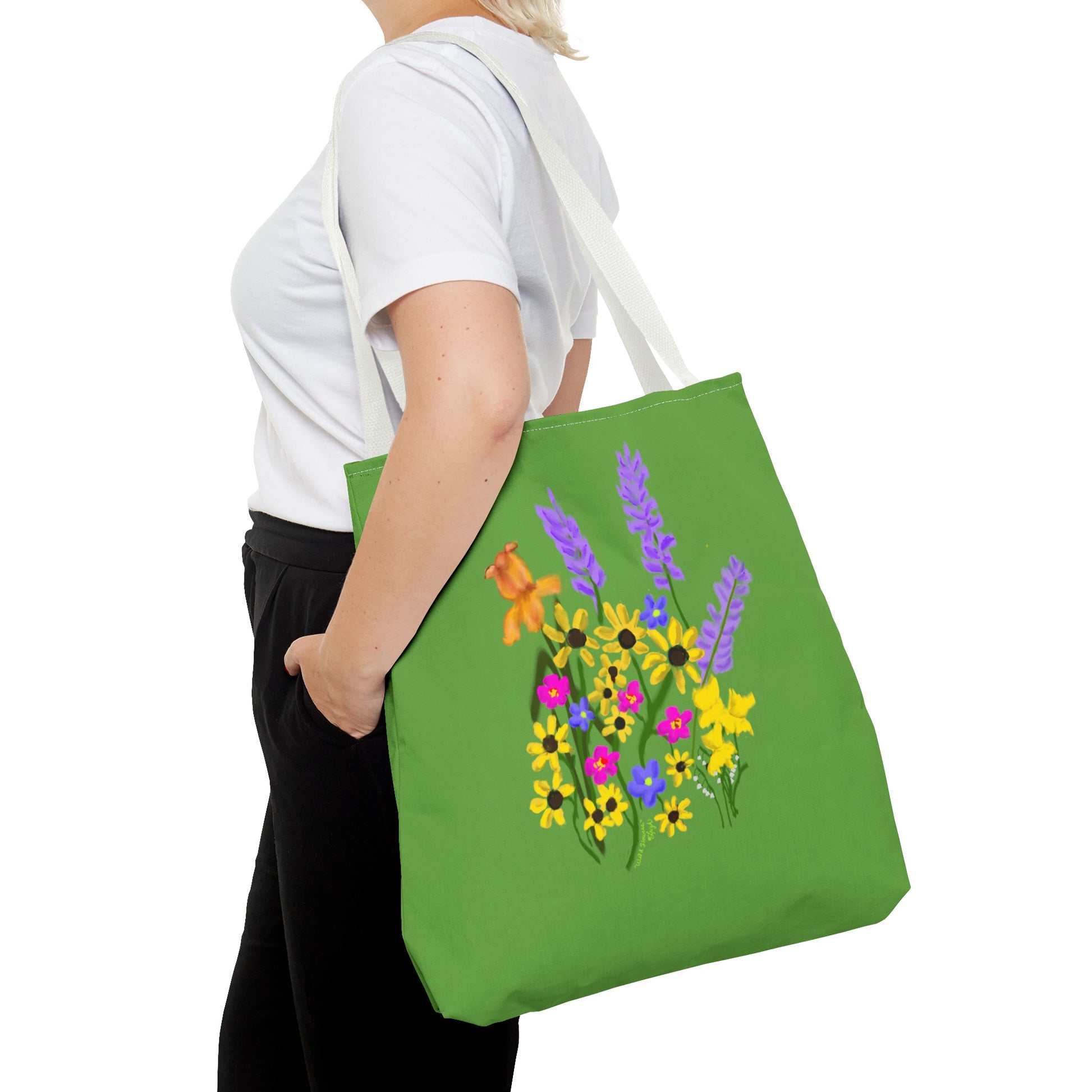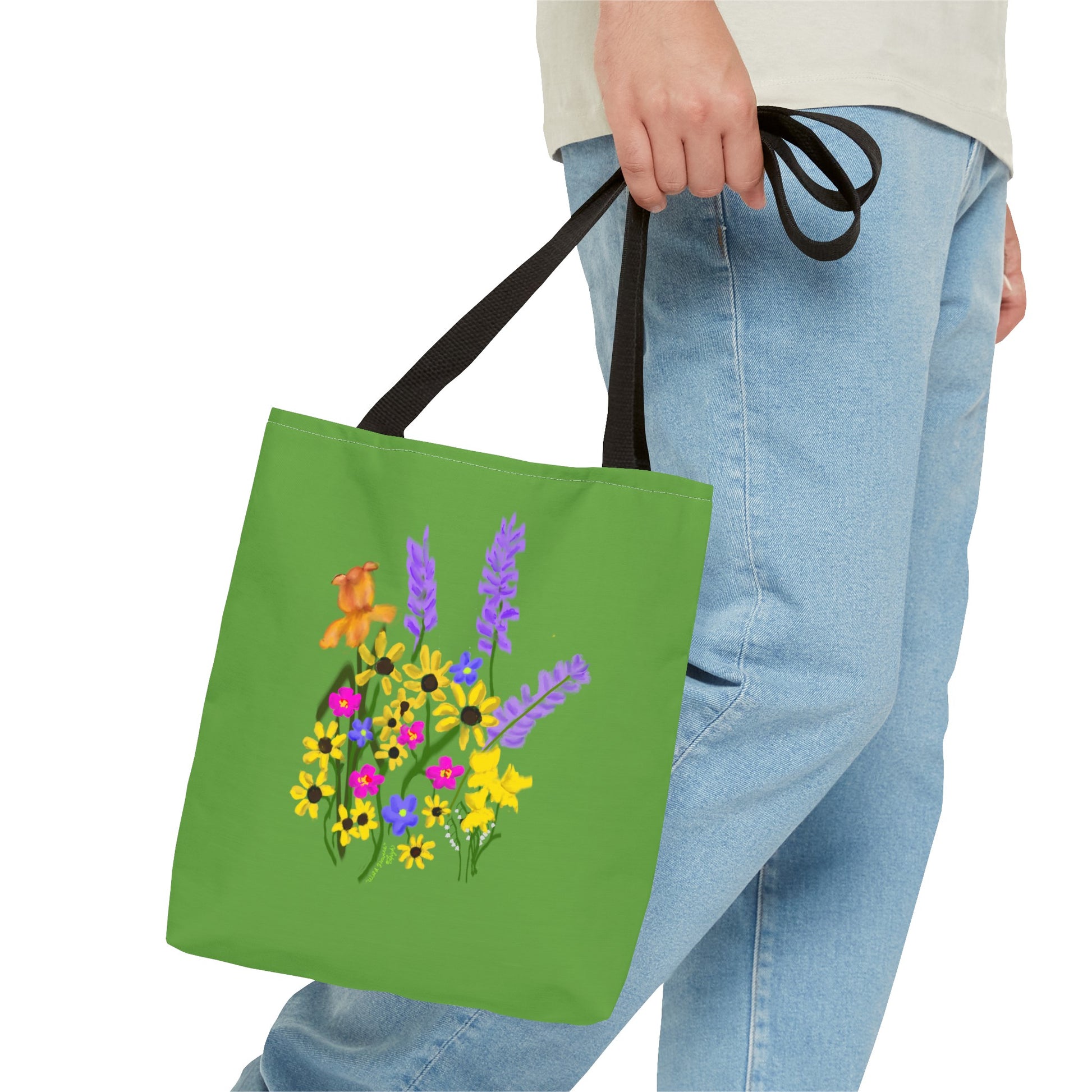 Scribbles Wildflowers - Green - Tote Bag (AOP)