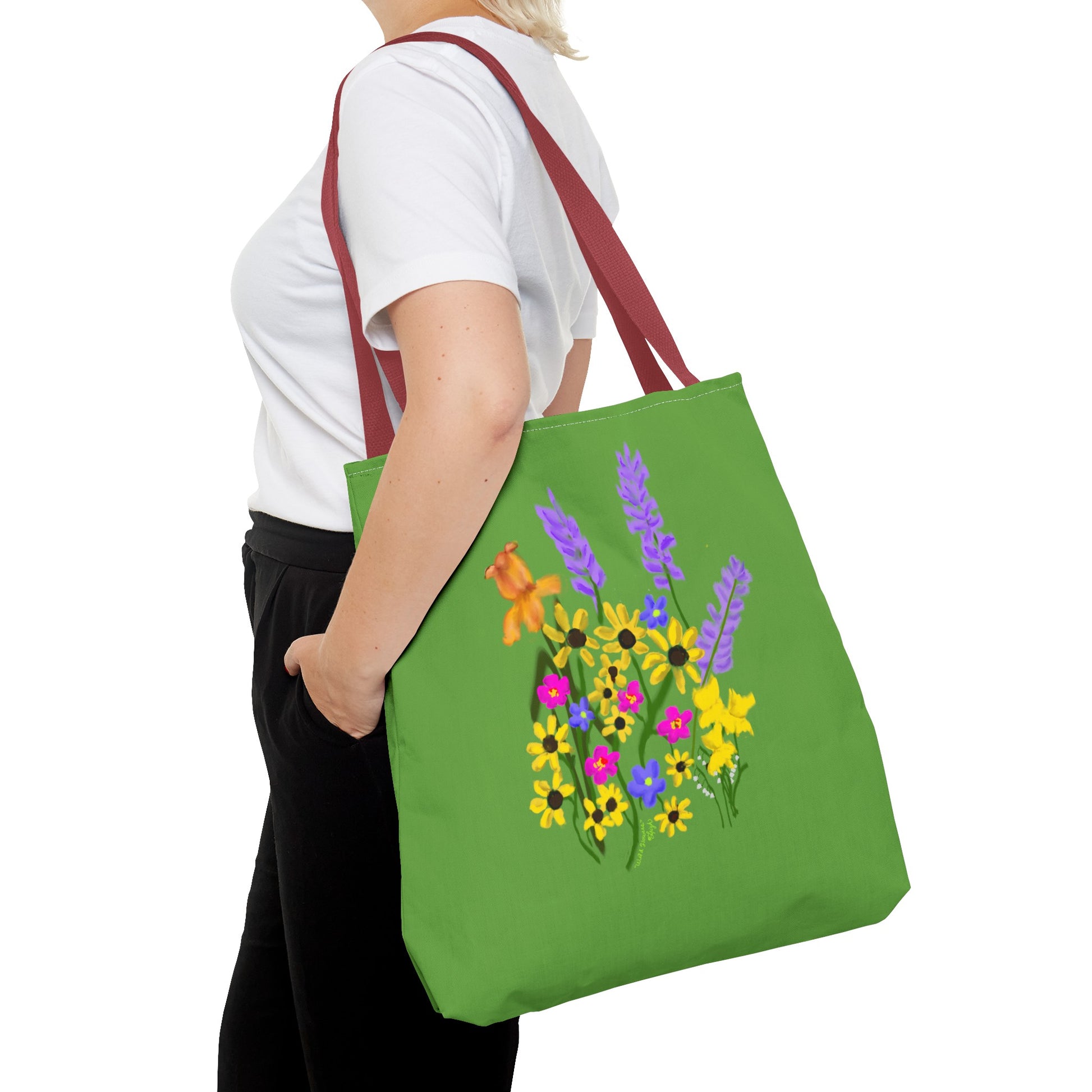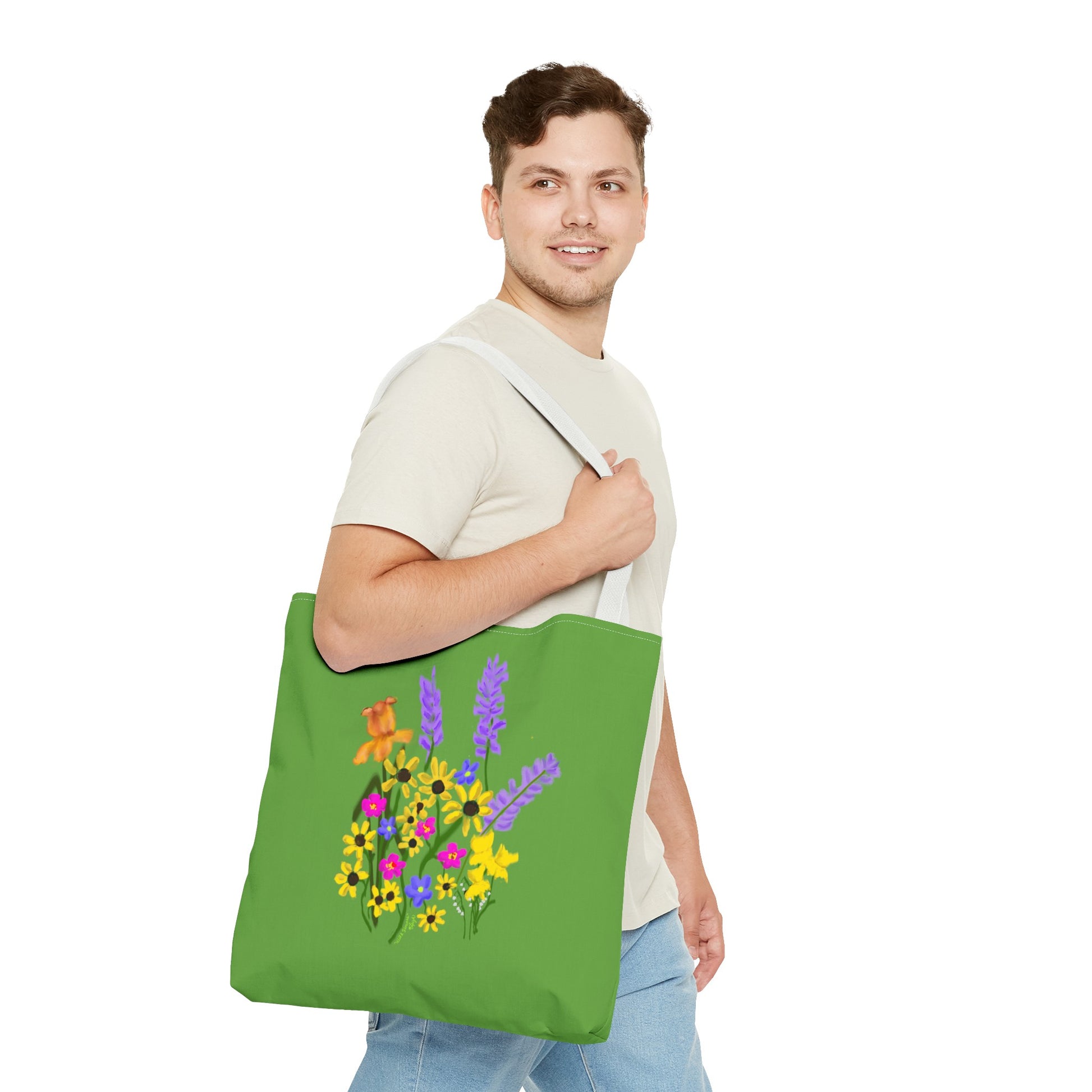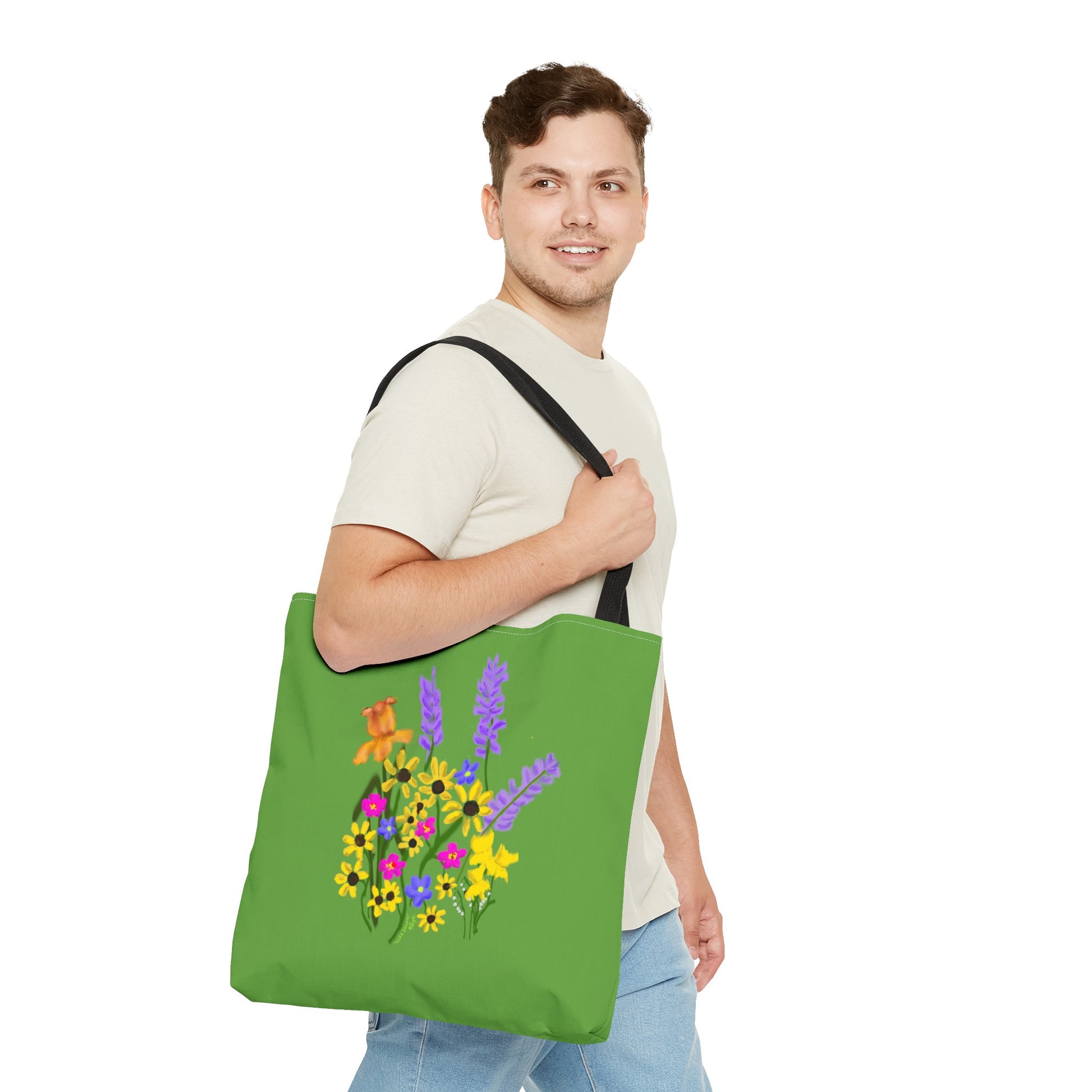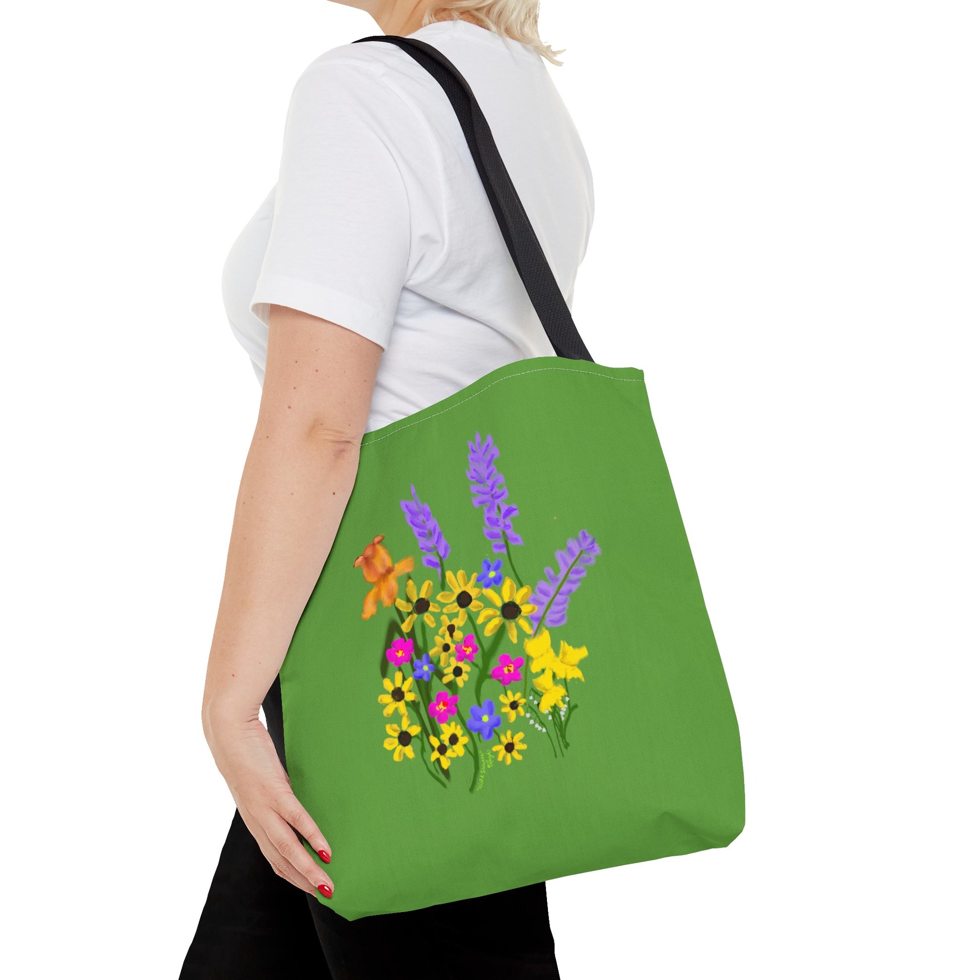 Scribbles Wildflowers - Green - Tote Bag (AOP)